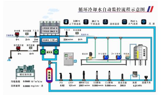系统可以有效控制循环冷却水缓释阻垢剂和杀菌剂的加药量、系统的浓缩倍数、排水量、补水量以及提供多种警示提醒功能。